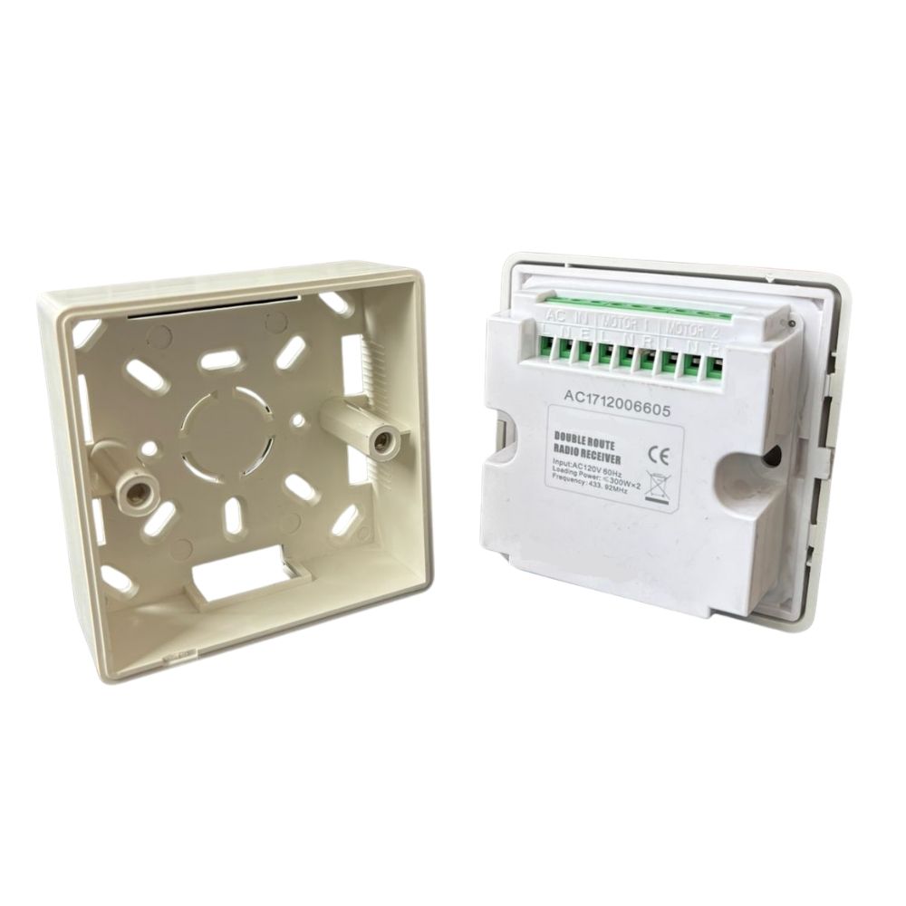 O Receptor de RF (rádio frequência) de 02 canais Linha PRO ARRF-002, para uso com até 02 motores tubular de Telas de projeção ou Persianas, com comando independentes entre si. Composto de um receptor duplo integrado com painel de duas botoeiras de três posições e com acabamento de acrílico cristal. Proporciona elegância e sofisticação ao ambiente.